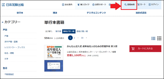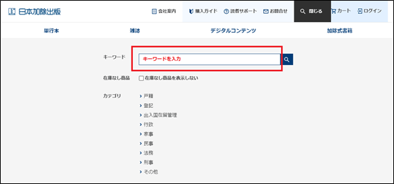 ページ右上の「書籍検索」をクリックすると検索ボックスが表示されます。